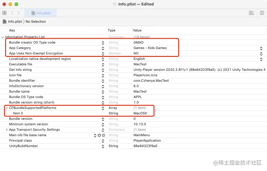 Bundle creator OS Type code, value:GMAD - xCode8.0版本:需要添加'CFBundleSupportedPlatforms':"MacOSX" (高版本的Unity打包后会自带)