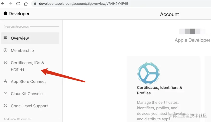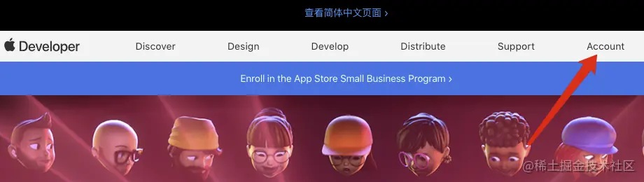 打开developer.apple.com/ 登陆账号,然后点击Account账户: