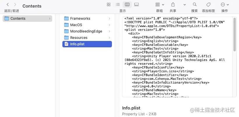 找到上面导出的app应用程序,右键选择“显示包内容” ,显示目录如下: