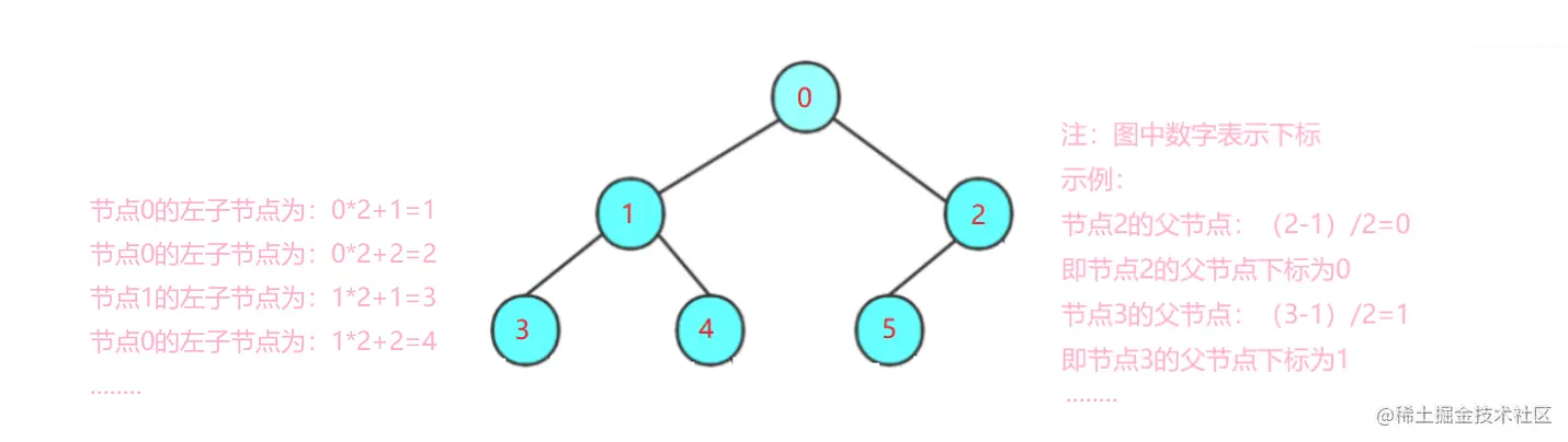 1. 若 i>0 , i 位置节点的双亲序号: (i-1)/2 ; i=0 , i 为根节点编号,无双亲节点