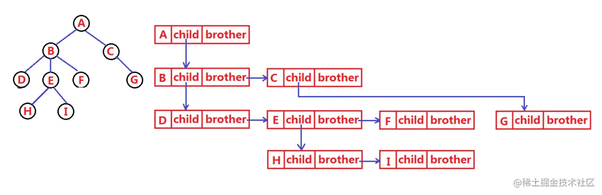 注:这里就简单的了解其中最常用的孩子兄弟表示法(相比来说最好的)
