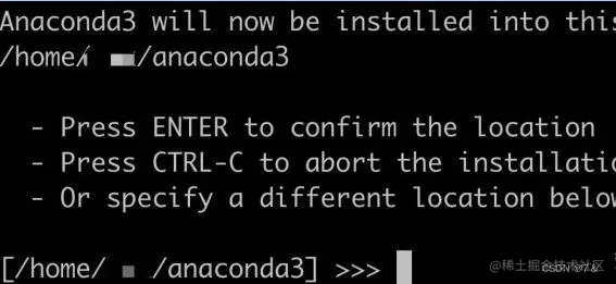 /home/user_name/anaconda路径下 - 不按enter键,可以自行选择安装路径,在