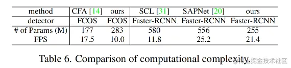 此外,在表6中展示了提出的方法与其他 SOTA 工作的计算复杂度的比较。