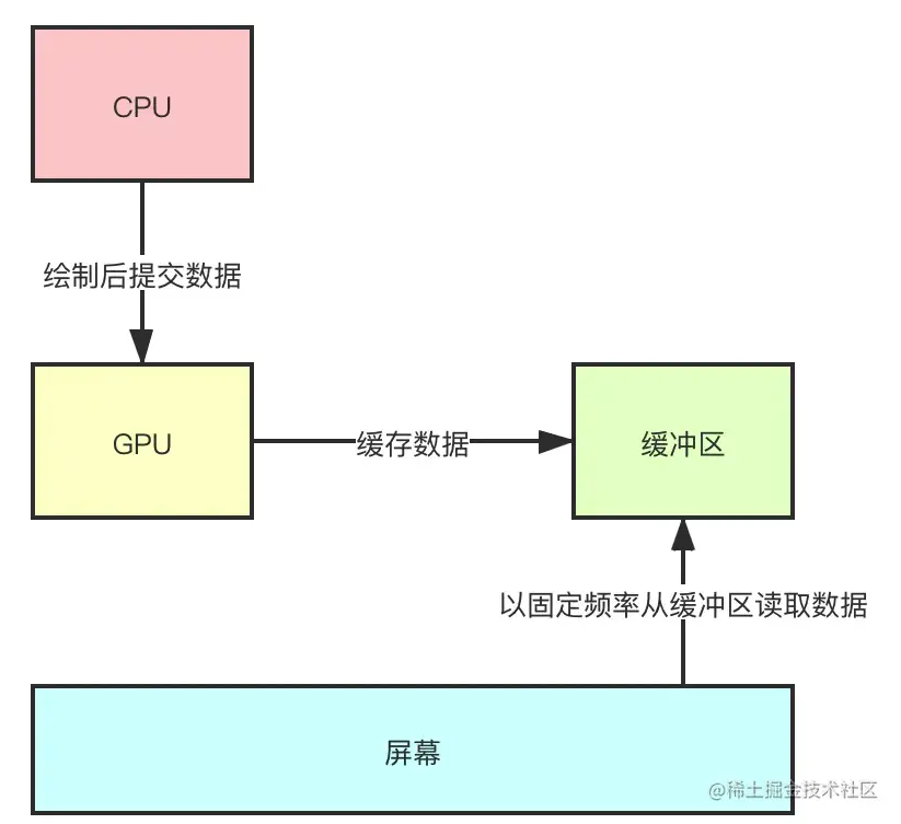 - GPU会对图形数据进行渲染,渲染好后放到buffer里