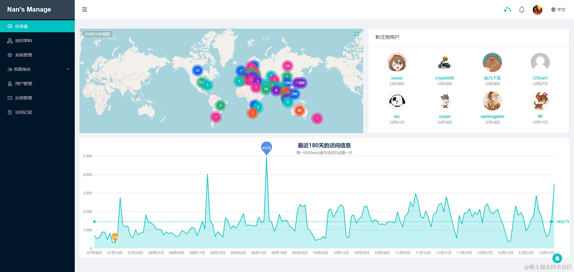 - 前端: Vue、Axios、Vue Router、Ant Design of Vue、Webpack、Less、Vuex、ES6、Node.js、mavonEditor、ECharts、...