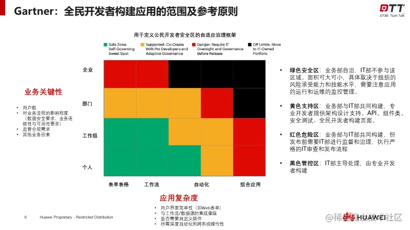 那么哪些场景适合使用低代码呢?我们可以参考Gartner发布的全民开发者构建应用的范围及参考原则。