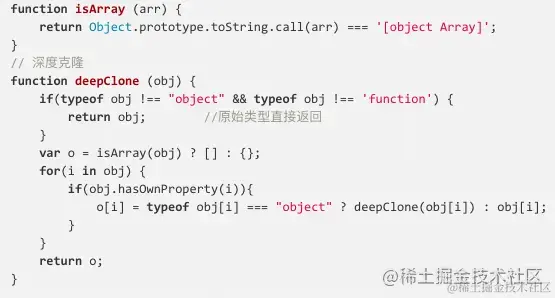 我们就来看一下如何实现一个深克隆,当然面试中没有让你完整实现的时候,但是你一定要搞清楚其中的坑在哪里,才可以轻松应对面试官的追问.