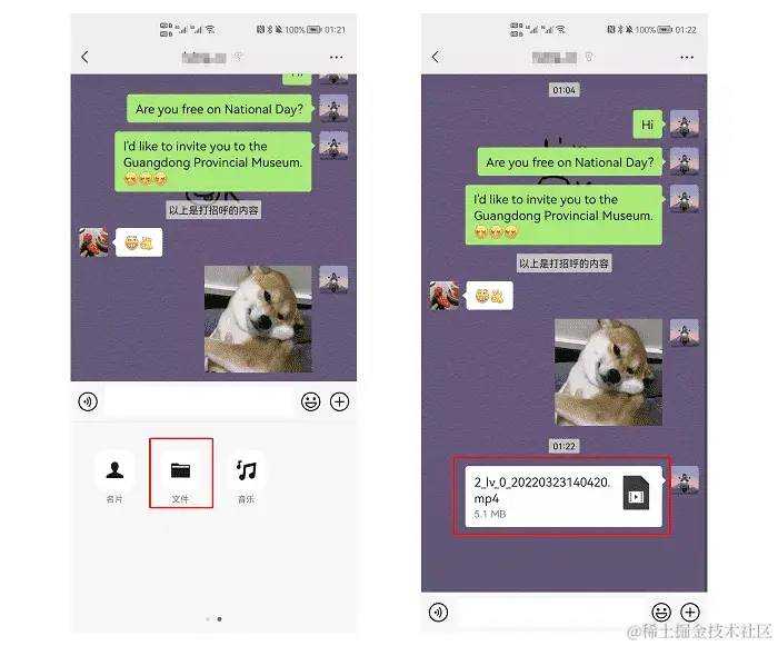 微信上发视频图片老是会被压缩,画质都不清晰了。点击消息框右边的加号,向右滑动,找到“文件”,点击进去,就能发送高清的视频和图片。