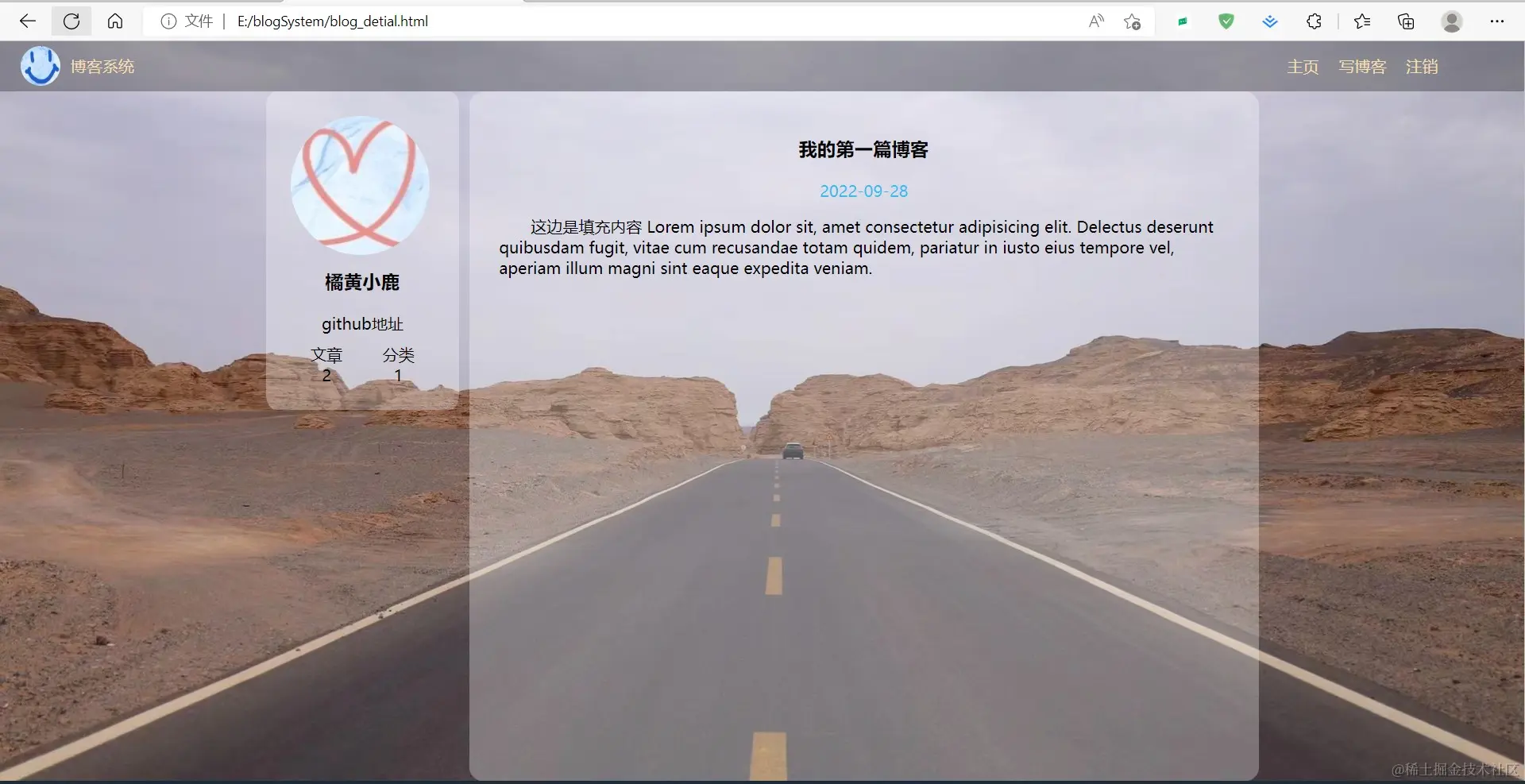 上面就是所有的代码,整体来说是简单的。但是上面还是会有问题的,那就是如果博客内容太多,就会导致页面变形。就会让多出来的内容,超过我们原本想的页面。我们解决的方法就是把滚动条放到我们的right里面加一个属性