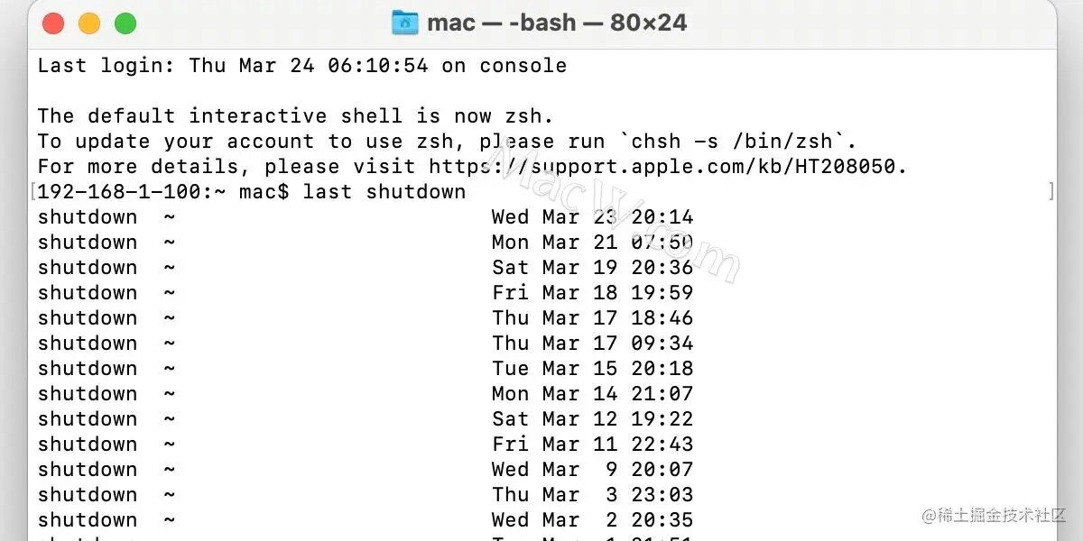 如果您需要查看 Mac 的关机或重启历史记录,终端是完成这项工作的完美工具。使用简单的命令行,您可以访问相关信息。