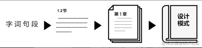 如图所示,字可以组成词,词组成句子,句子再组成段落、章节……直至最终成书。