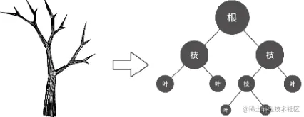 这种结构类似于经典的“叉树”结构。以最简单的“二叉树”为例,此结构始于其开端的“根”节点,往下分出来两个“枝”节点(左右2个节点),接着每个枝节点又可以继续“分枝”,直至其末端的“叶”节点为止