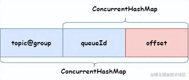 从上面可以看到,Broker 上的偏移量最终保存在 offsetTable 这个变量上,数据结构如下图: