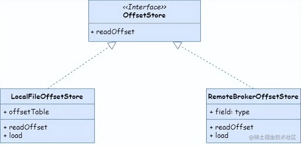 上面的代码看出,偏移量是从 OffsetStore 中获取的。OffsetStore 是一个接口,实现类有两个,如下图: