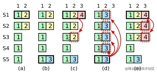 prevLogIndex处的日志的任期号与prevLogTerm不匹配时,返回 false(5.3节) - 如果一条已经存在的日志与新的冲突(index 相同但是任期号 term 不同),则删除已经存在的日志和它之后所有的日志(5.3节)