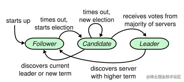 - 如果在超过选取领导人时间之前没有收到来自当前领导人的