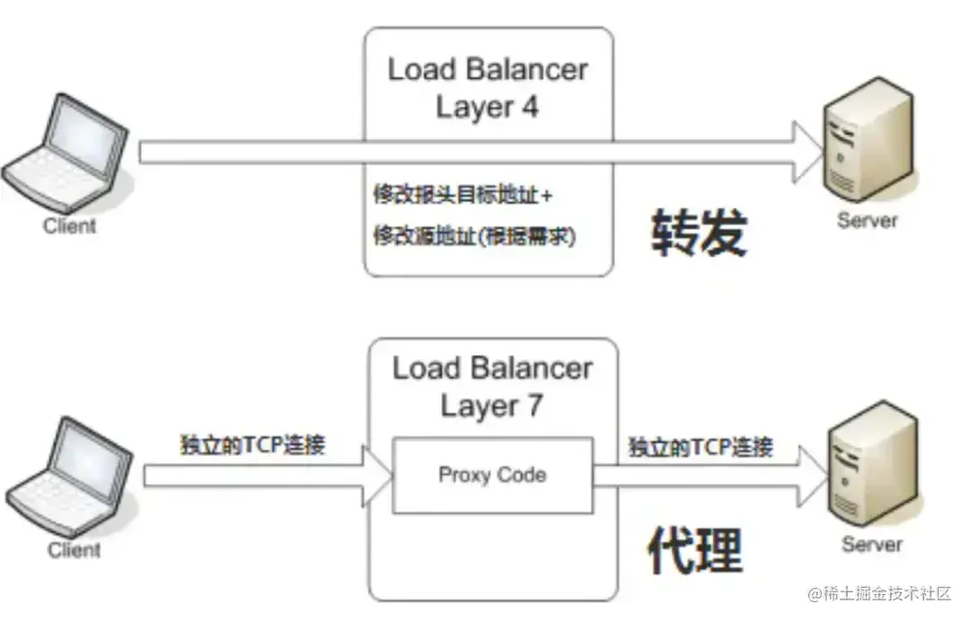 先通过一张图来看看四层代理和七层代理的区别: