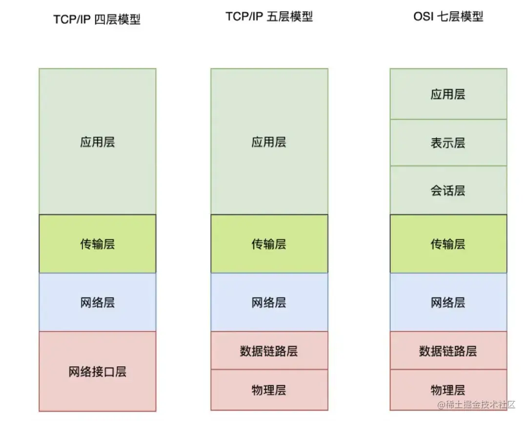 要聊几层代理,需要先看一下网络分层,在之前的文章中也提到,标准的七层网络分层,也就是OSI七层模型。TCP/IP五层模型和TCP/IP四层模型是从OSI七层优化而来。
