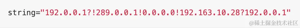 *string="192.0.0.1?!289.0.0.1!0.0.0.0!192.163.10.28?192.0.0.1"