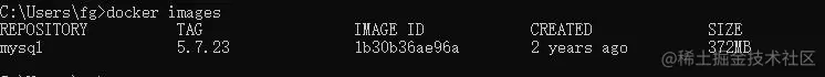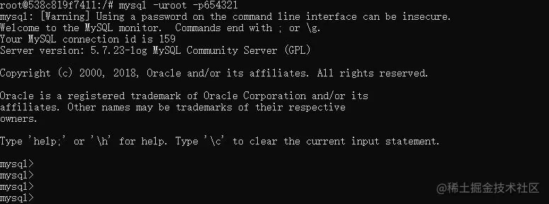 - -d 后台运行,镜像文件为mysql:5.7.23