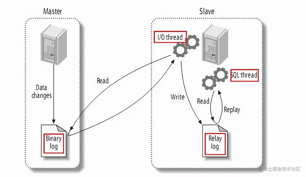 - 从库启动之后,创建一个SQL线程,从relay log里面读取内容,从Exec_Master_Log_Pos位置开始执行读取到的更新事件,将更新内容写入到slave的db