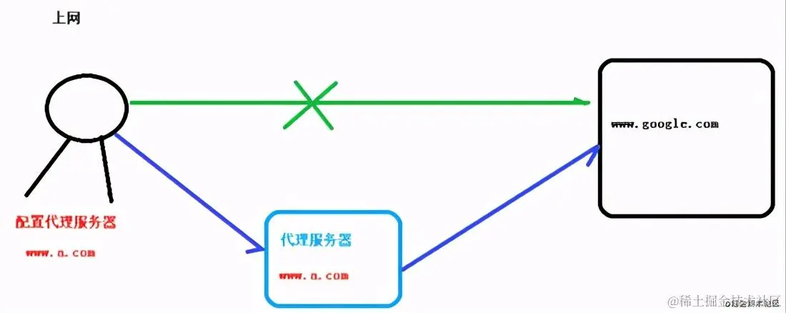需要在客户端配置代理服务器进行指定网站访问(代理的是客户端)