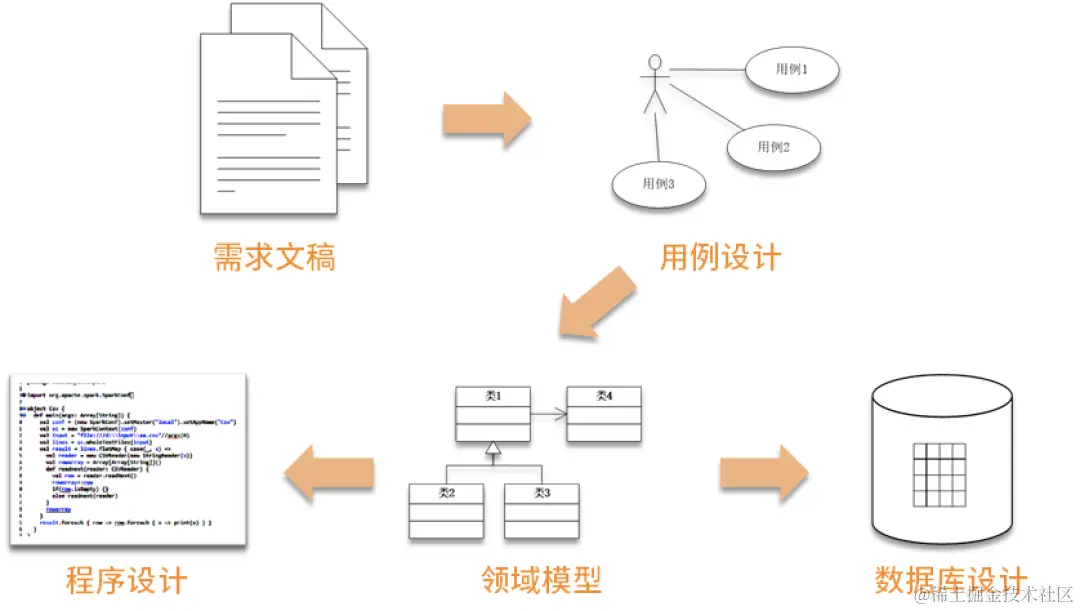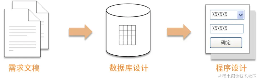 在这个设计过程中,其核心是领域模型的设计。以领域模型作为核心,可以指导系统的数据库设计与程序设计,此时,数据库设计就弱化为了领域对象持久化设计的一种实现方式。