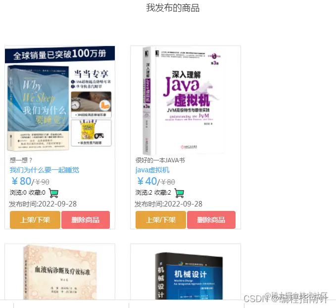 查看我发布的商品:可以进行商品上下架 和删除操作