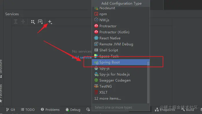 添加服务,选择Spring Boot