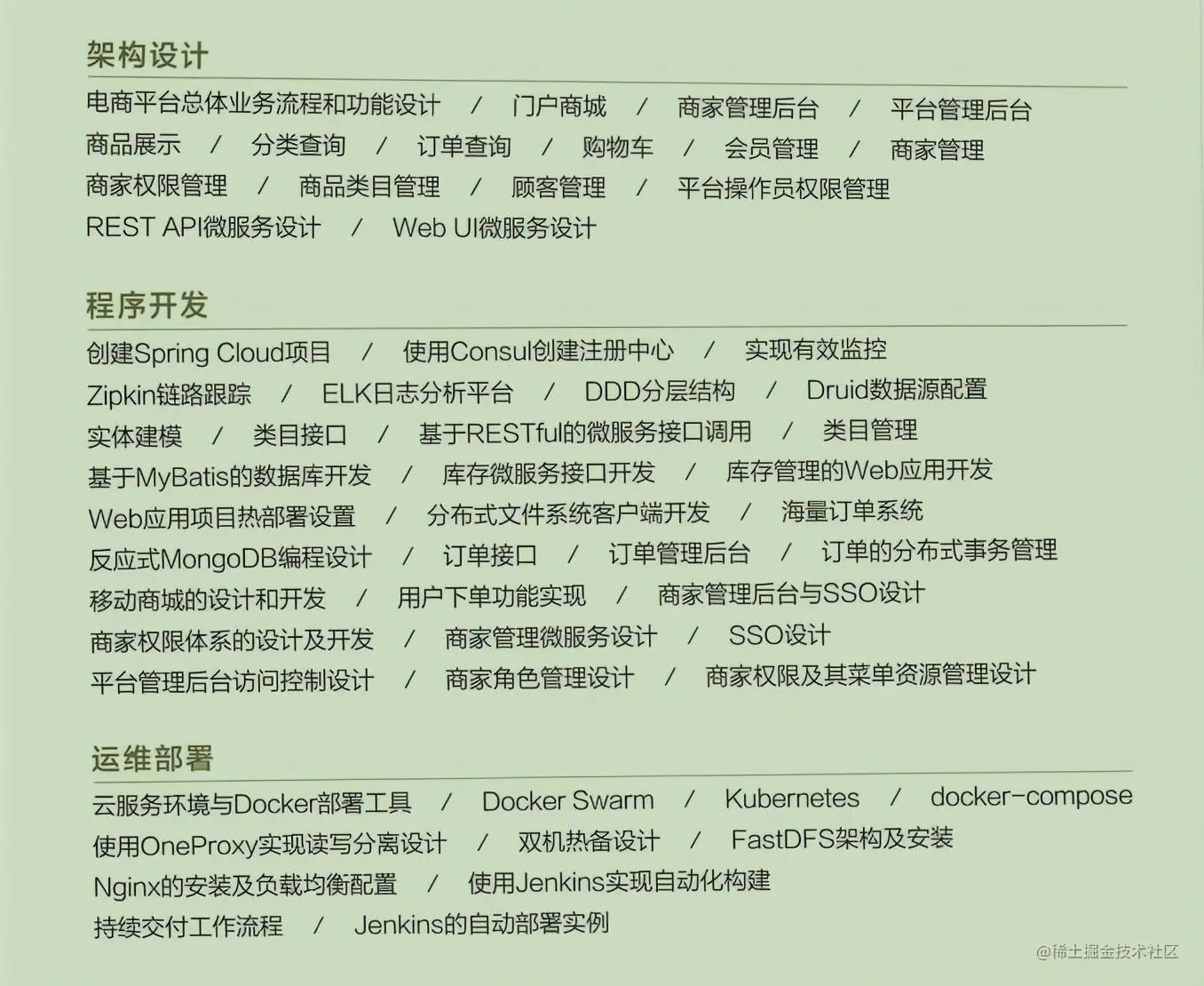 - 本书按架构设计、程序开发、运维部署层层递进讲解。