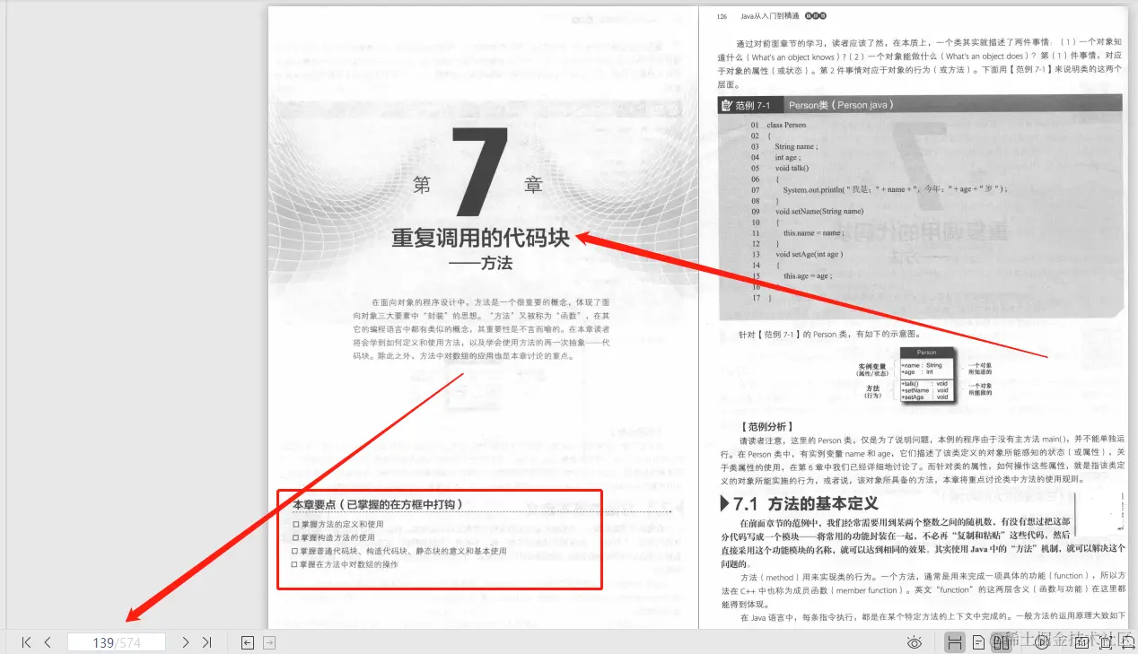 第7章 重复调用的代码块—方法: 在面向对象的程序设计中,方法是一个很重要的概念,体现了面向对象三大要素中“封装”的思想。。 方法”又被称为“函数”,在其它的编程语言中都有类似的概念,其重要性是不言而喻的。在本章读者将会学到如何定义和使用方法,以及学会使用方法的再一次抽象——代码块。除此之外,方法中对数组的应用也是本章讨论的重点
