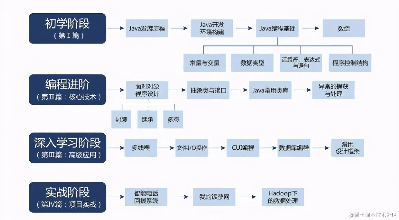 本书总结了作者多年的实践经验,为读者设计了学习路线。也是以这四部分贯穿全书的!!!!