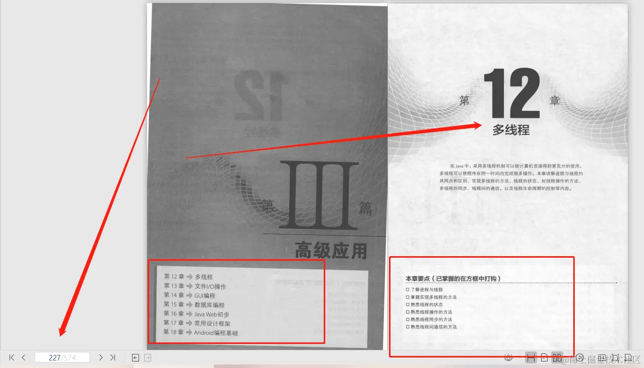 第Ⅲ篇【高级应用】 主要介绍多线程、文件I/O操作、GUI编程、数据库编程、Java Web、常用设计框架以及Android编程基础等;