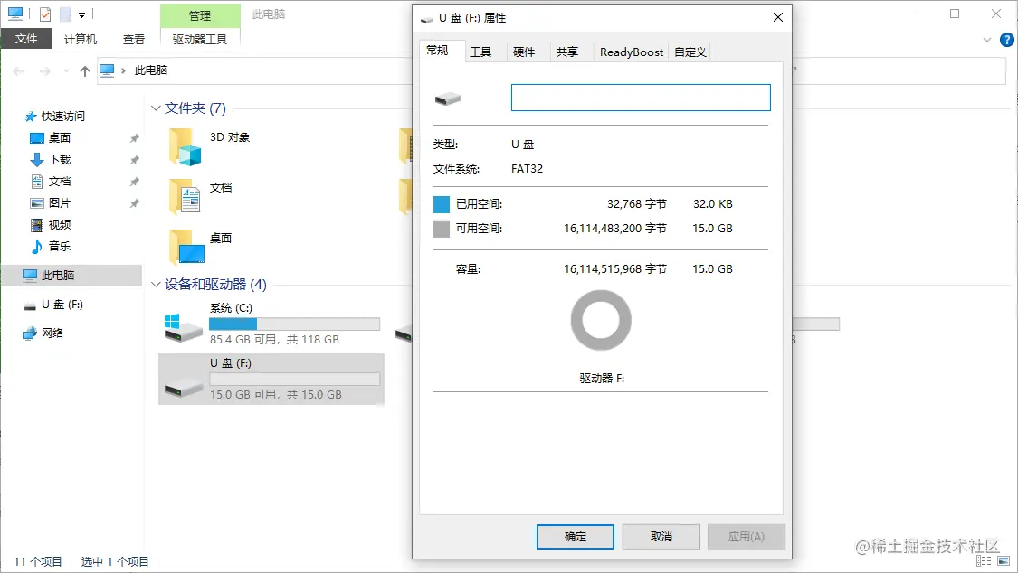 - FAT32(Windows):支持最大分区128GB,最大文件4GB;