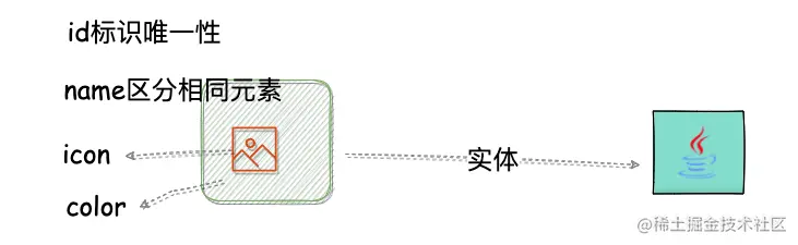 首选我需要定义一个游戏元素对象,GameItem: id、name、icon、color