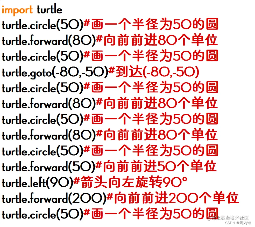 以下将会以实战讲解的方式详细讲述海龟绘图的各种命令操作。(以下题目均来自CSDN)