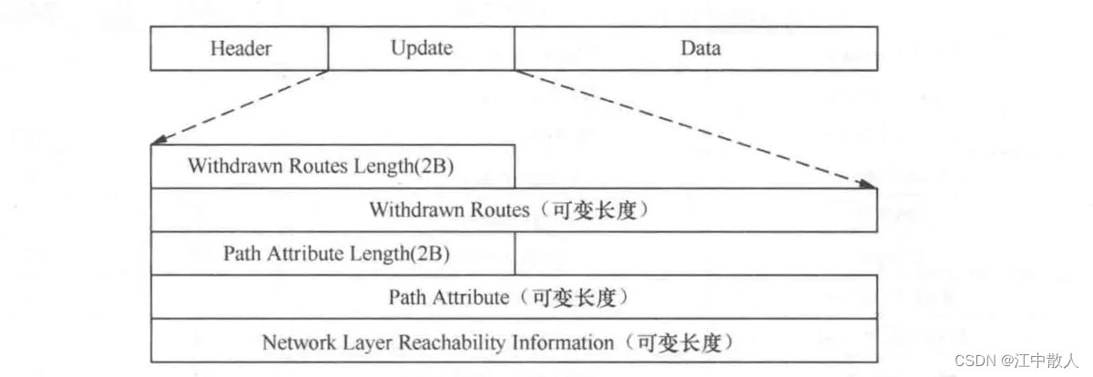 - Withdrawn Routes:表示不可达路由的前缀和前缀长度;