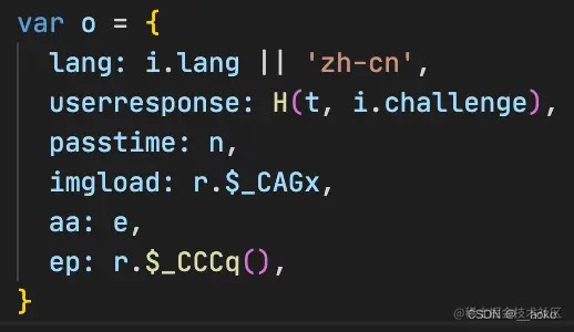 H是一个固定的函数,可以复制出来,t具体是什么暂时不确定,i.challenge看起来是接口返回的challenge,我们一会儿可以确认一下。 - passtime:验证的通过时间,来自函数入参