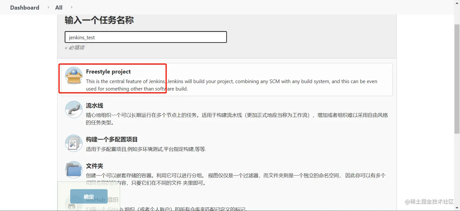 输入任务名字,选FreeStyle project(自由风格的项目)