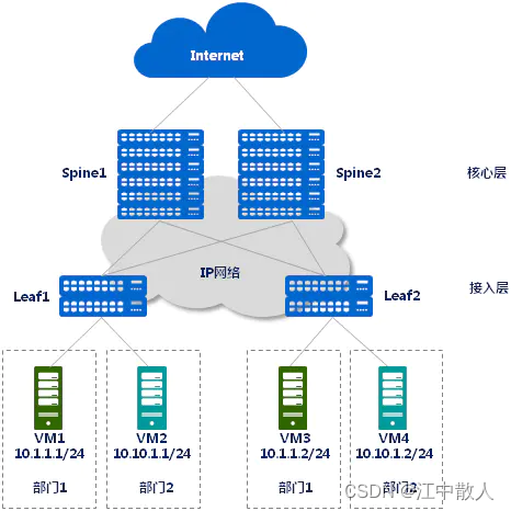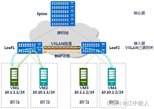 - 跨Leaf节点不同部门VM之间的通信
