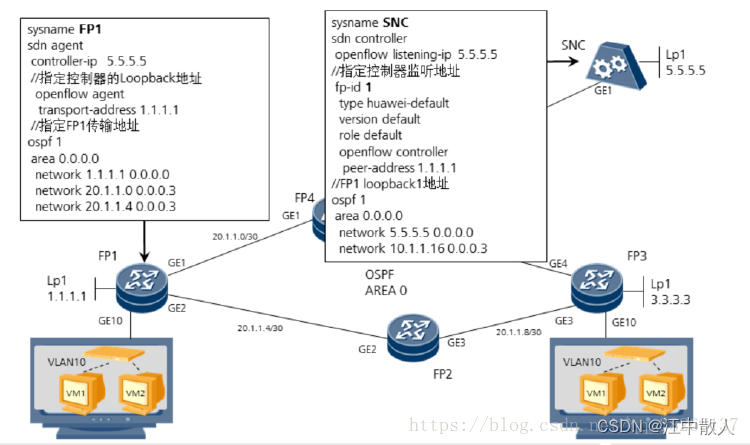 基于SDN的VXLAN基本组网: