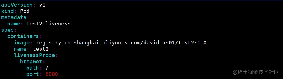 现在我们来创建一个新的包含HTTP GET探针的Pod。如下为该Pod的YAML文件内容: