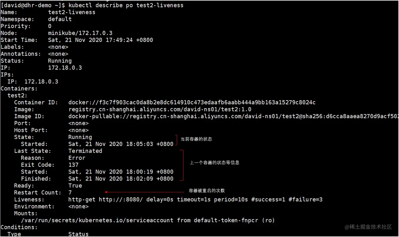 可能你已经注意到了,kubectl describe命令还显示了关于存活探针的附加信息: