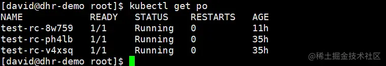 可以看到ReplicationController管理的这三个pod仍在运行: