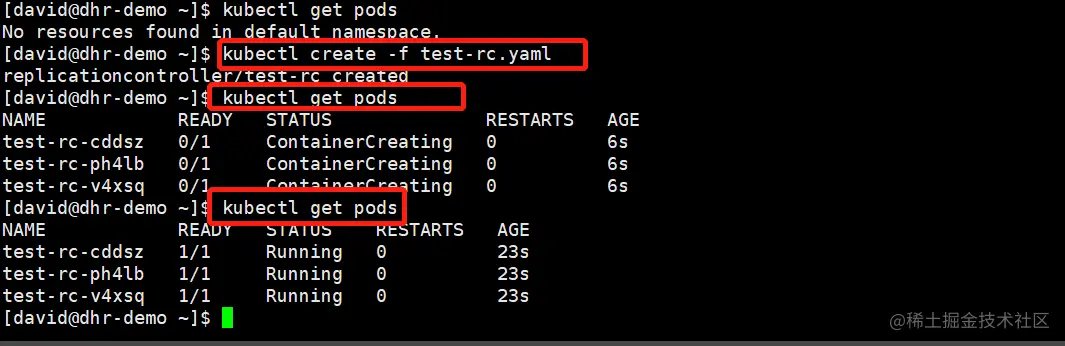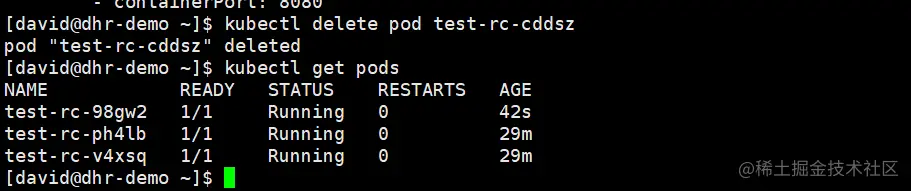 可以看到ReplicationController为我们又创建了一个新的pod。