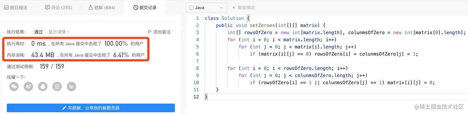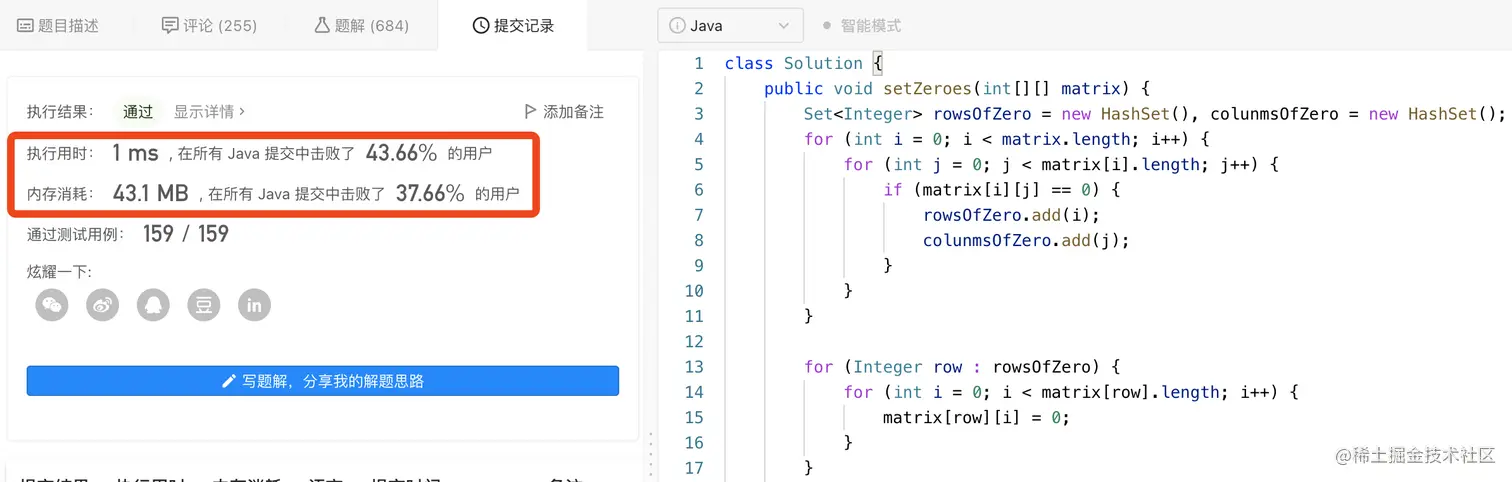 下面的两种实现方式,其实主要就在于采用哪种数据结构去存储行等于0的集合(rowsOfZero)以及列等于0的集合(columnsOfZero)。具体请见如下两种代码实现。