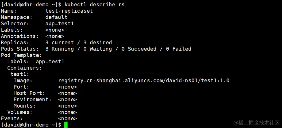 当前集群中的三个pod拥有标签app=test1,而这个ReplicaSet的标签选择器也是app=test1且replicass期望数为3,所以这三个pod刚好满足ReplicaSet的要求,因此如果我们创建这个ReplicaSet的话,就不会自动创建新的pod了。