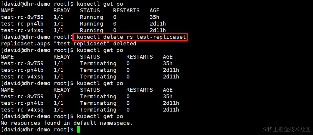 kubectl delete rs test-replicaset