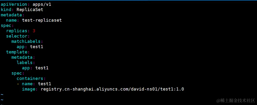 从上面的YAML定义文件可以看出该ReplicaSet的标签选择器匹配标签key为app、标签value包含test1的pod。如果某个pod拥有标签app=test2,则该ReplicaSet的标签选择器也能与其匹配。