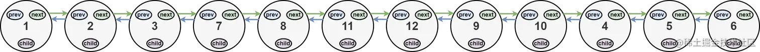 扁平化后的链表如下图: